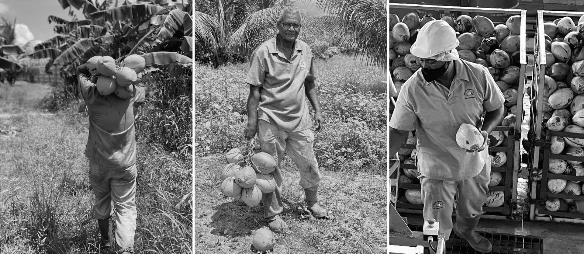 Trabajadores recolectando cocos